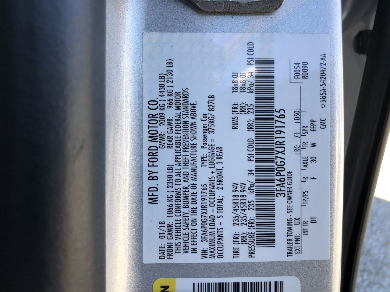 Vehicle Inquiry for 2018 Ford Fusion S FWD